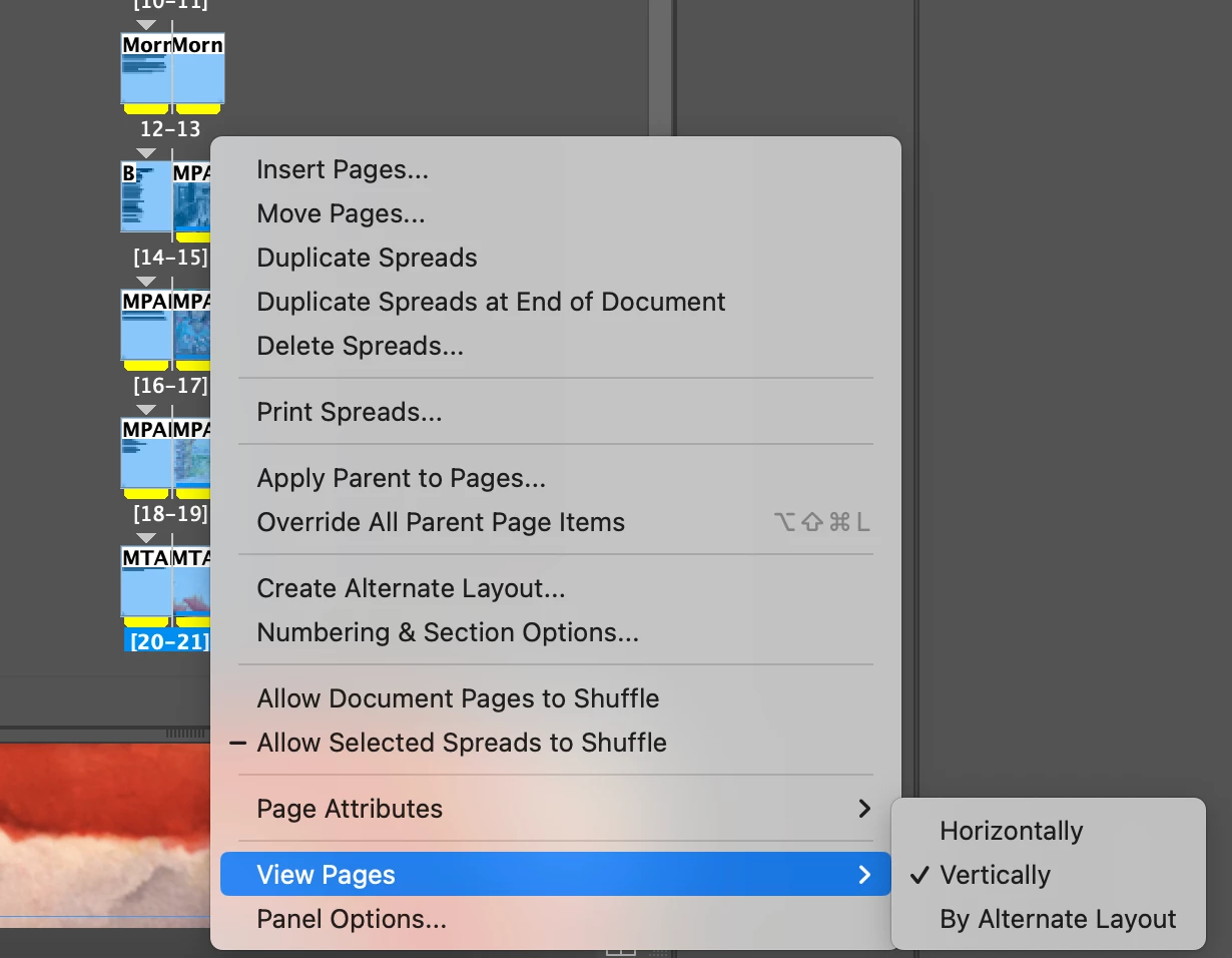 In brief, I am moving pages from two separate files into a new file. When I do so, the pages from one file are listed under a different layout to the pages from the other file. I don't want this. I'd like them just to be one continuous layout.