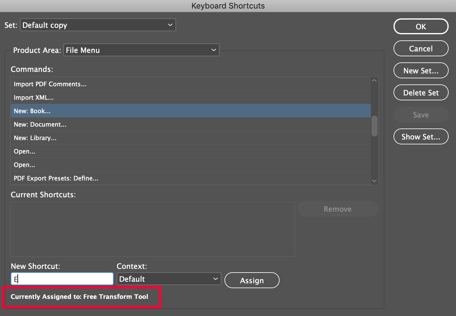 I'm working with an older document that somehow has acquired a shortcut such that when you are typing in a text box and want to type the letter "e" it switches to the next character style rather than outputting an "e". This behavior doesn't apply to other in design documents or other applications, so I know it's not a keyboard issue or a problem with the general shortcuts in InDesign preferences. At some point in the history of this document, the "e" key must have been assigned as a shortcut somewhere local to the document, but I can't find it. I've checked all the character and paragraph styles, and none have any shortcuts. I'm stumped. Any ideas as to where else I can look to disable this infuriating shortcut would be much appreciated! I'm halfway made up my mind to just recreate the document from scratch, but I thought I'd make one last attempt to stomp this bug if anyone has any suggestions.