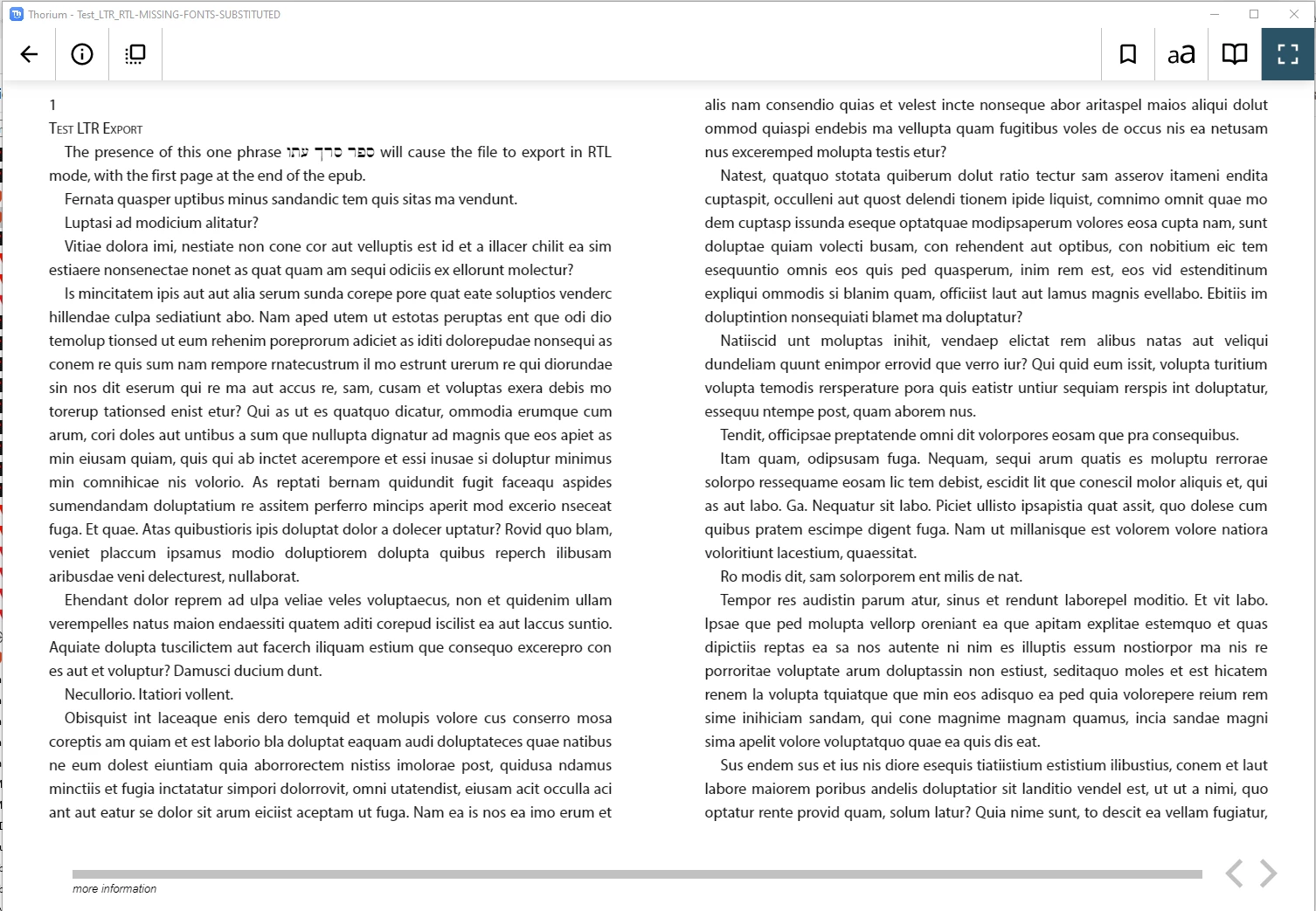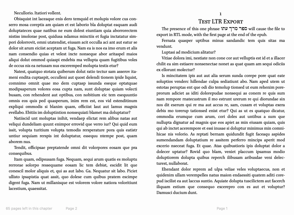 The attached screen snap shows the epub pages running right to left. The only RTL characters in the 50+ page document are the three Hebrew words in the first sentence.