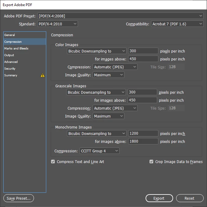 Yesterday Acrobat completely disappeared from my Mac, so I did a re-install. Now that I'm on the updated version, I'm creating a press-ready file for a client — all the photos are severely bitmapped in the PDF as if they are 72dpi. I've double-checked the images in Photoshop, all's good, 300dpi and CMYK and reduce to 21% in IDD.
