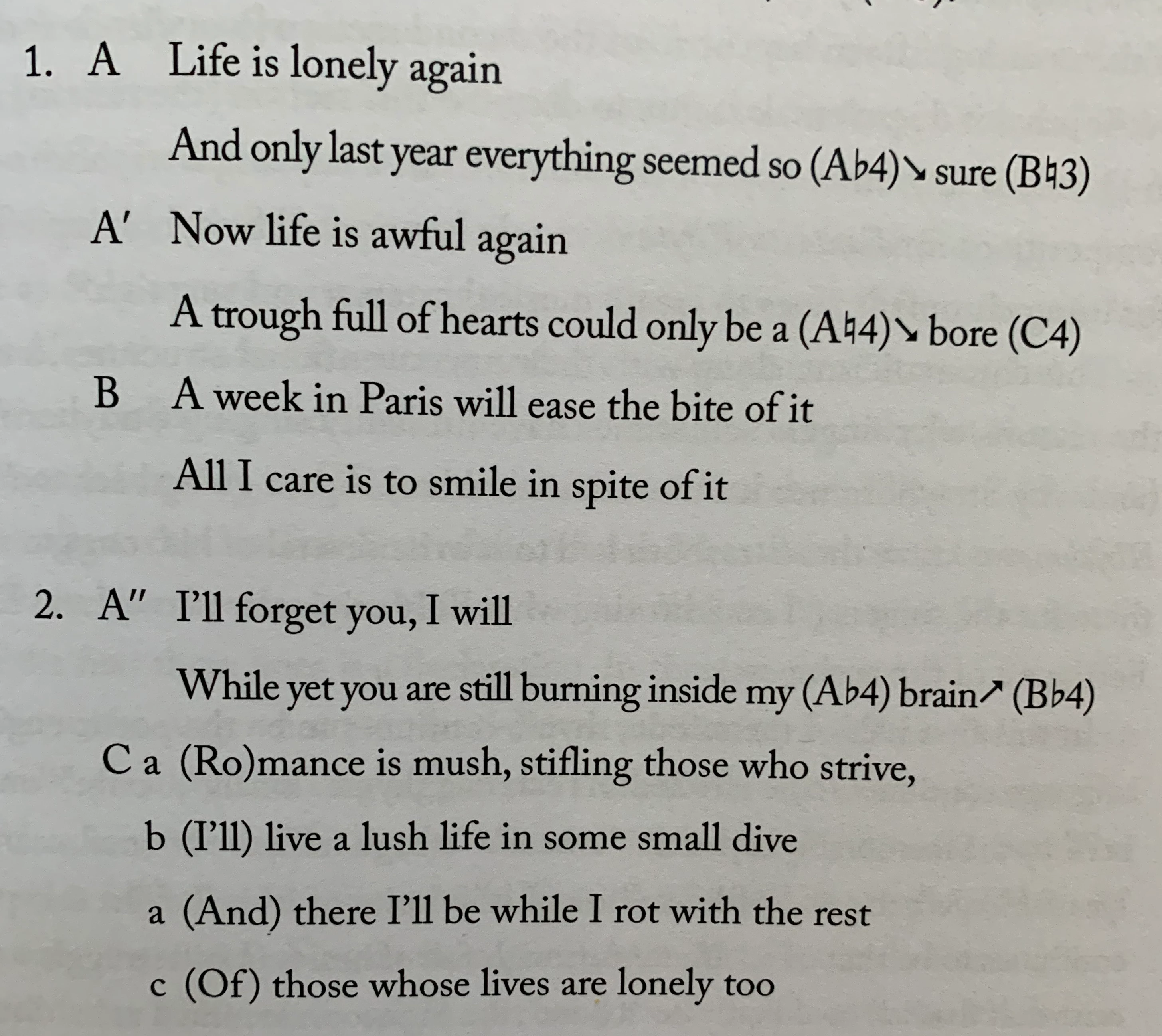 I am publishing a print and an ebook version of a book about music. I have occasion to present analytical representations of song lyrics - example attached. I know nothing about InDesign, but that is the tool my book designer is using. She/we are having difficulty getting the alignment to come out right in the EPUB file InDesign exports. I have looked at the html and stylesheet in the EPUB file (using Calibre), and I can see she is flailing. I believe if someone were doing this for a web page, they would use a CSS grid layout. My understanding is that InDesign has equivalent grid functionality, and my instinct is that is what we should be using, but the designer doesn't seem familiar with the grid functionality in InDesign, at least for this purpose. I am posting this to ask what would be the appropriate tool/functionality in InDesign to get the alignment right in the EPUB output. (Feel free to answer using InDesign specific terminology, as I will be passing this on to her anyway.)