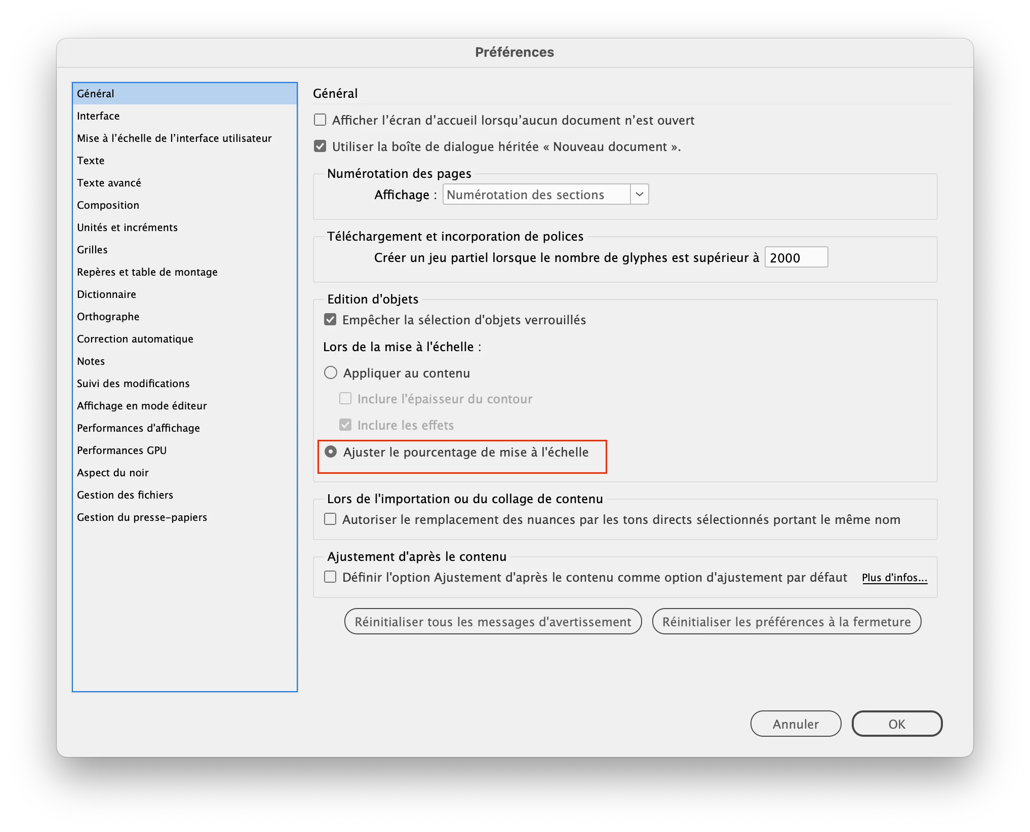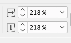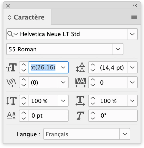 Ce réglage fait que quand tu effectues une mise à l'échelle d'un bloc texte, que ce soit manuellement ou via une variante de mise en page, l'affichage du corps du texte entre parenthèses correspond à sa valeur réelle et l'autre à sa valeur d'origine. Dans mon exemple, le bloc texte a été agrandi à 218 % de sa valeur originale et tu lis donc une taille de texte de 26,16 pt soit 12 x 218 %.