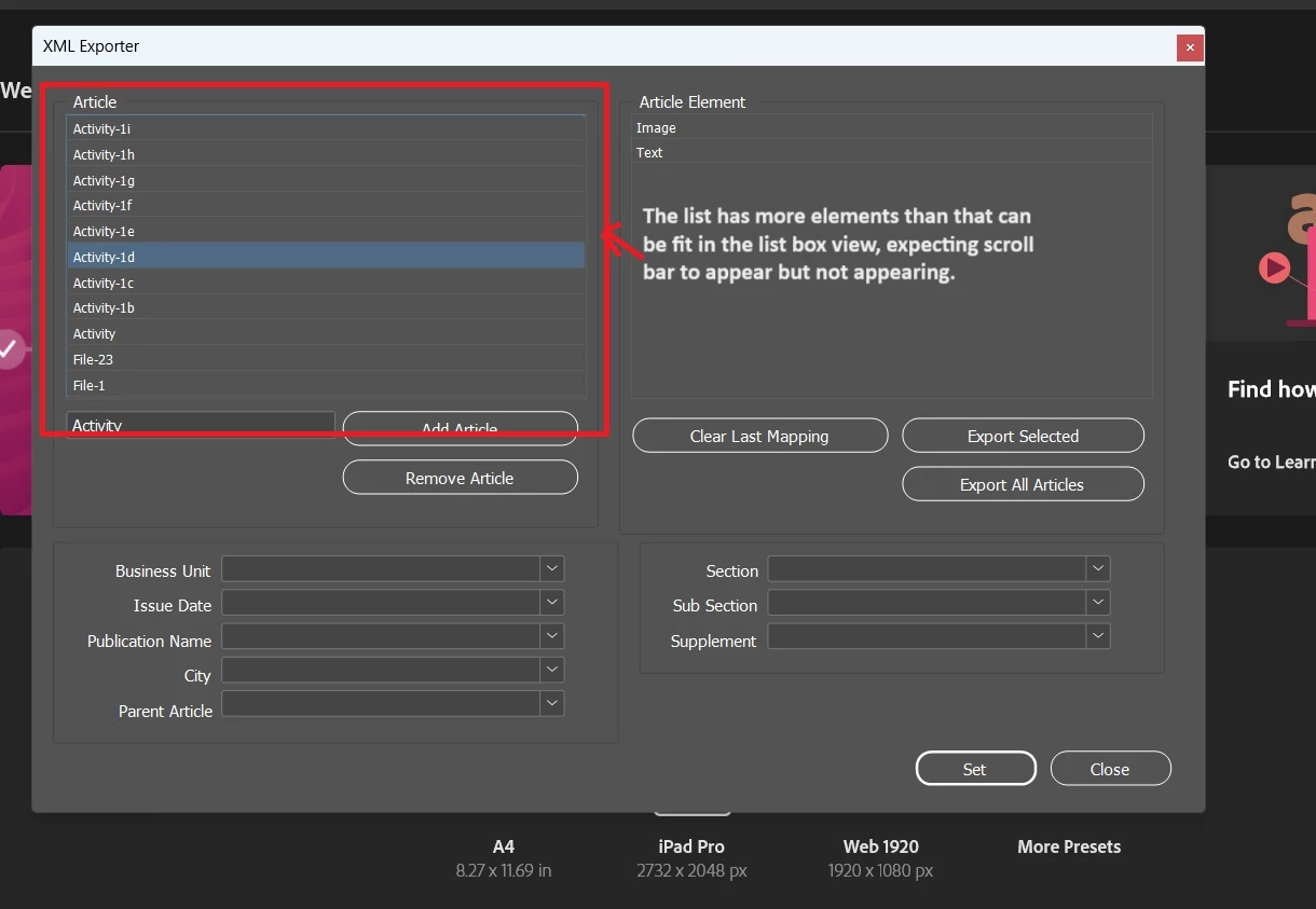 I am using StdListBoxWidgetN for creating a dynamic list wherein insertation to/deletion from the list happen dynamically. When the number of items in list exceeds the number of items that can be displayed in the list, it is expected that vertical scroll bar will appear and I should be able to scroll the list vertically. However this not happening. The vertical scroll bar doesn't appear and I can scroll down t access the last added items. The .fr content for the list is as follows: