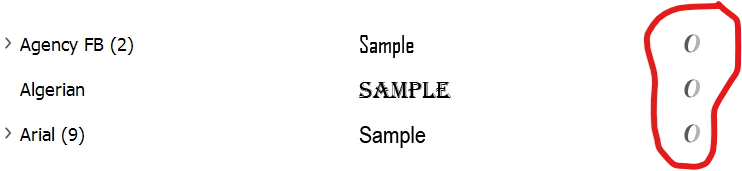That indicates the type of font. These are open type fonts. For more details on other icons you can see the article given below