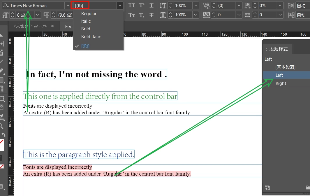 What kind of evil is this? Paragraph styles have no effect when applied and show missing fonts?