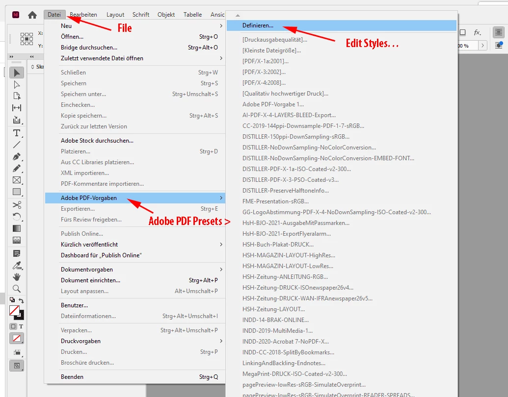 I am doing some video lessons and would like to clean up the Adobe PDF Presets menu in the Export as PDF dialog box.