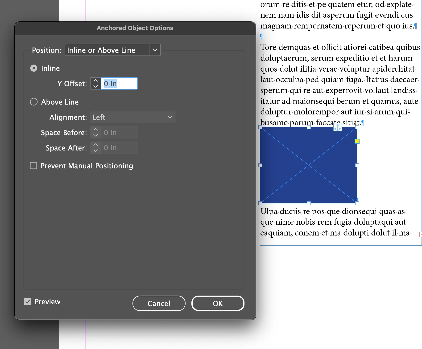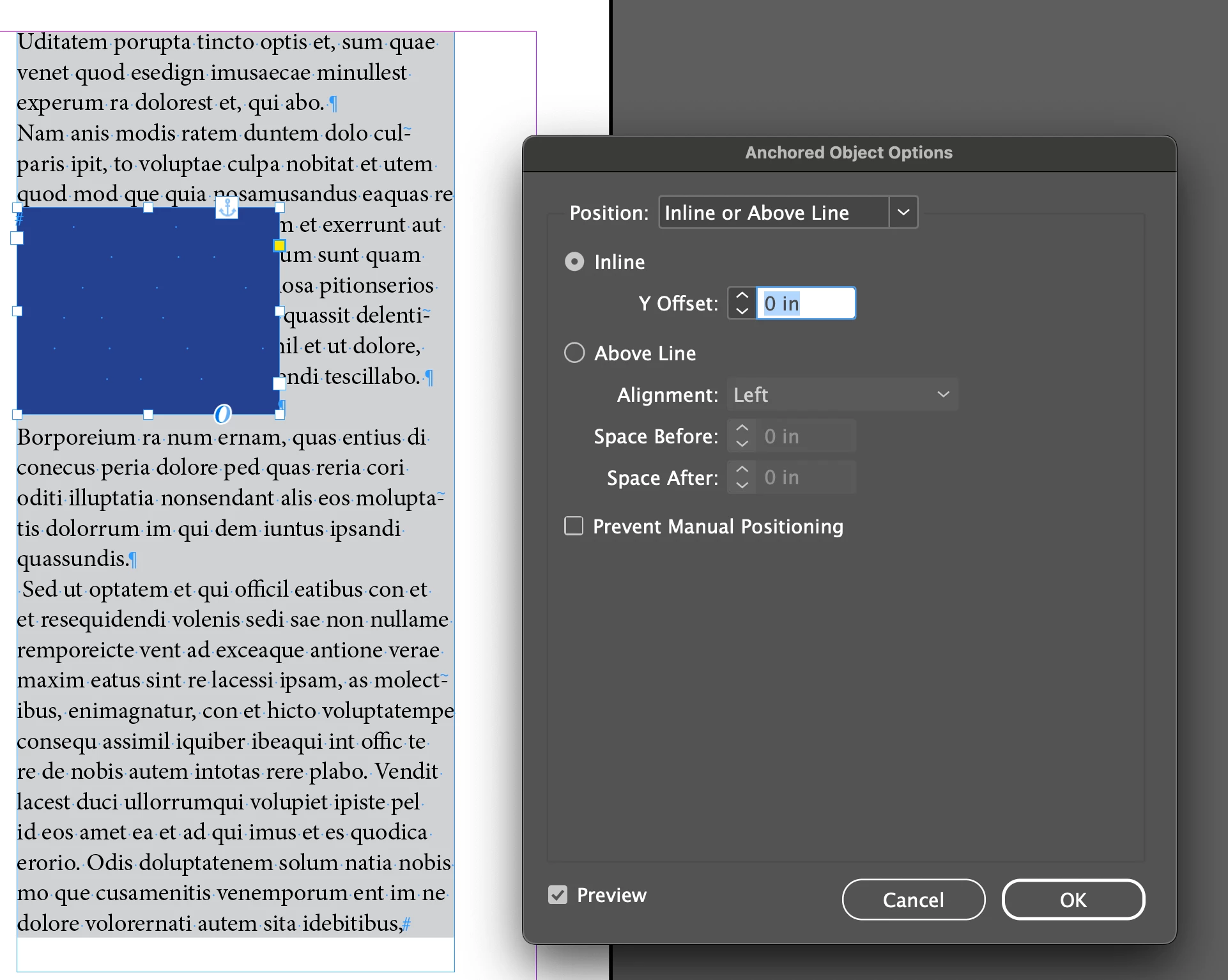 I'm trying to figure out how to get "clean" anchored objects when pasting - e.g. pasted a graphics frame & have it take up "paragraph space" just like a paragraph would.