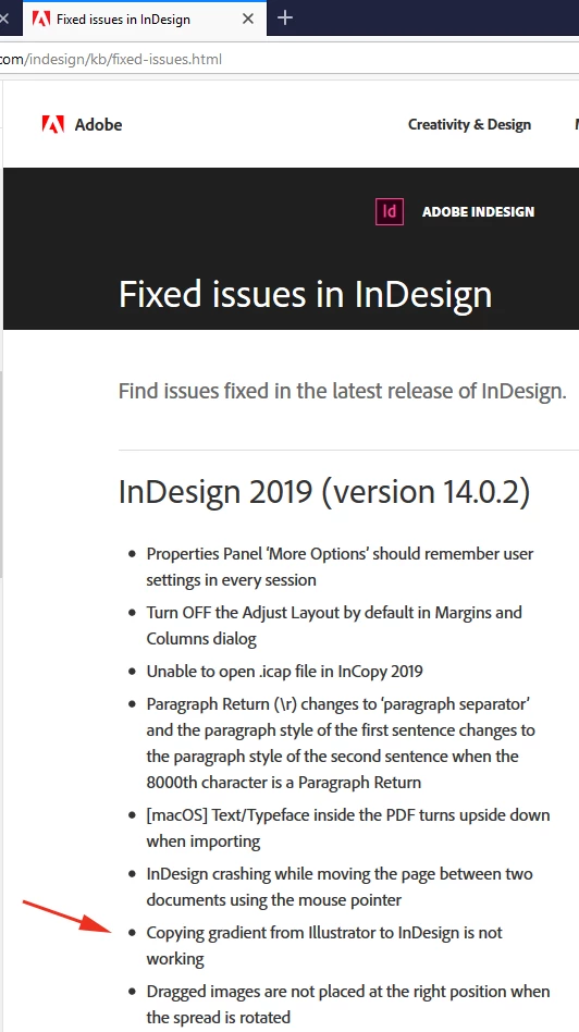 All I want to do is try to bring the gradient swatch over from Illustrator over to InDesign. At one point you could copy and paste it but it does not work. Everything that has been suggested has been done. Thank you for your article which Ive read and thats why I posted the question. Im stuck