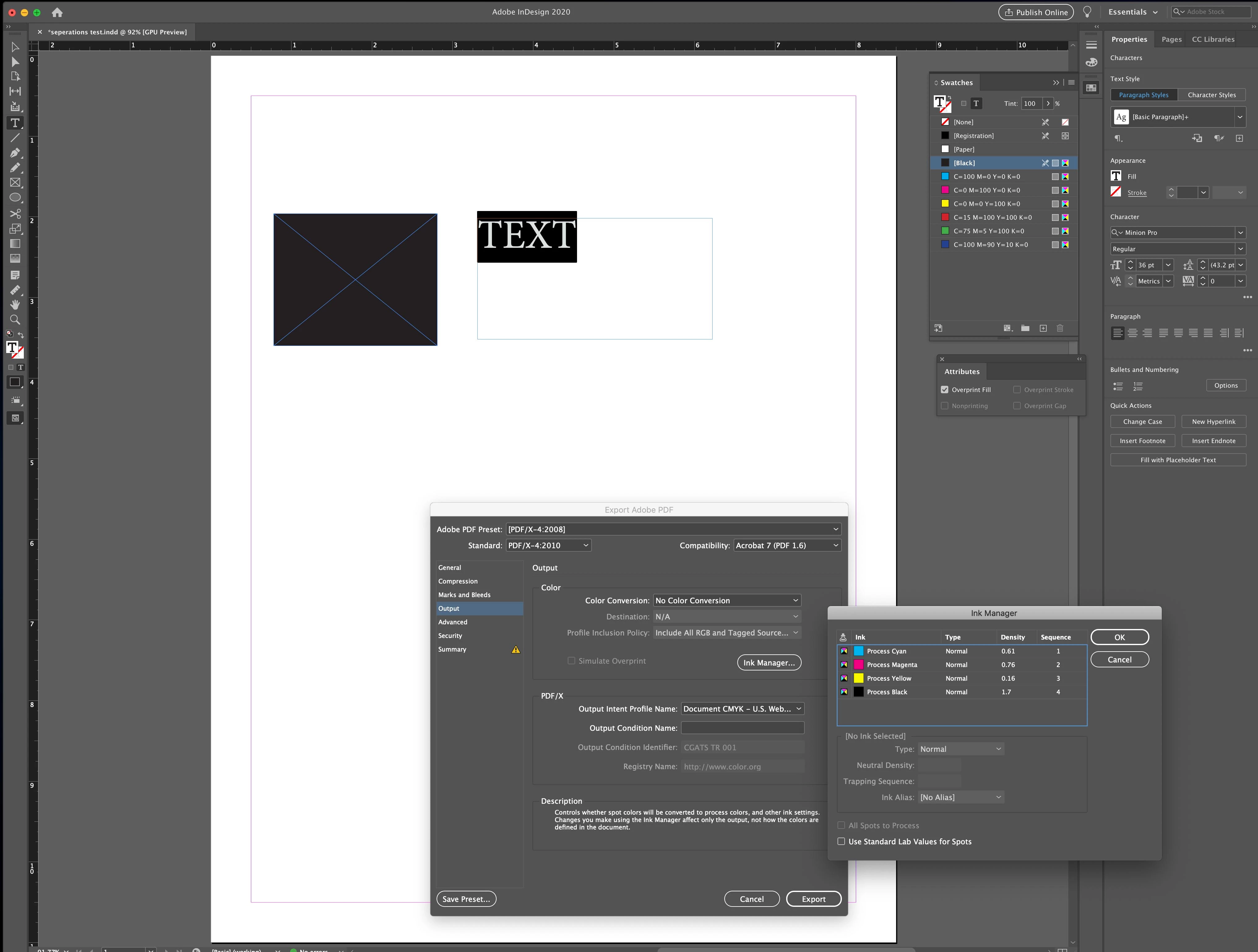 Hi, I'm hoping someone can help me. I have an InDesign document (v15.0.3) with 100% Black text. When I export this to PDF using just the Adobe PDF preset "Press Quality", my 100% black text is converted to CMYK with the text appearing on all 4 printing plates instead of just the black plate. I sent the same file to a friend and he exported to PDF using the same "Press Quality" and the black text came out on only the black plate as 100% black (which is what I want). I have switched computers recently to a Macbook Pro 15, 2019 running Mojave 10.14.6, so I am wondering if there is some setting somewhere in InDesign that I need to change so that 100%black text in InDesing seperates to 100% black text on only the Black plate when exporting to PDF. I hope my explaination is clear.