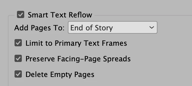Then, of course, I must delete any pages left over. Which is stupid. Also stupid is if I hadn't guessed enough pages and had to repeat the procedure. So . . . how to I place text that will add pages as they're needed and will fill both verso and recto and will stay within the master page text frame?