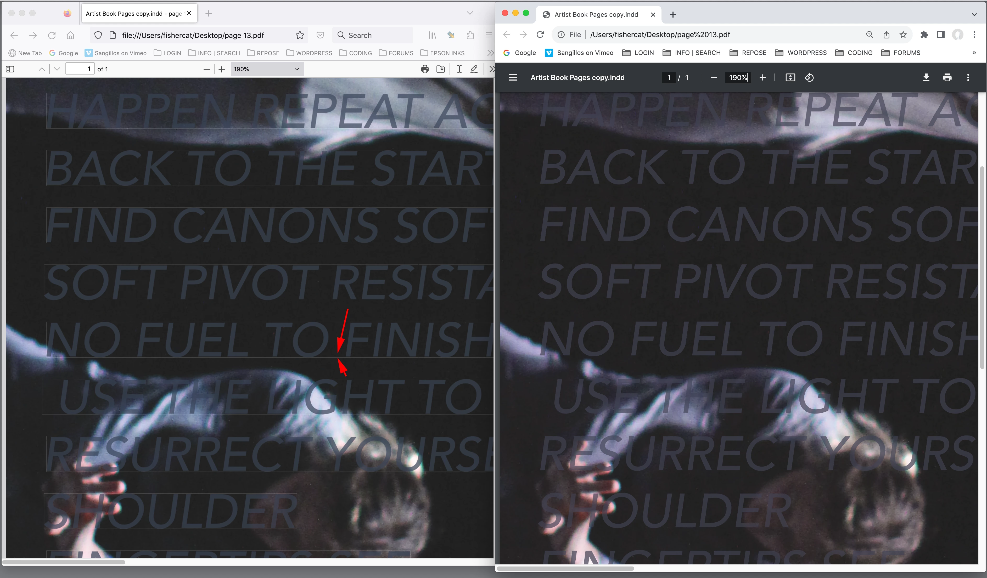 Also, if you are viewing the PDF in a browser, the strategies browsers uses for anti-aliasing the flattened boundaries can be different. Here’s Firefox on the left, which shows the stitching, and Chrome on the right: