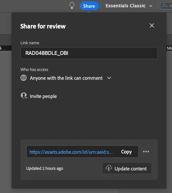 I'm talking of the "Share" function that allows designers to share the InDesign documents with external stakeholders normally used to proof documents.