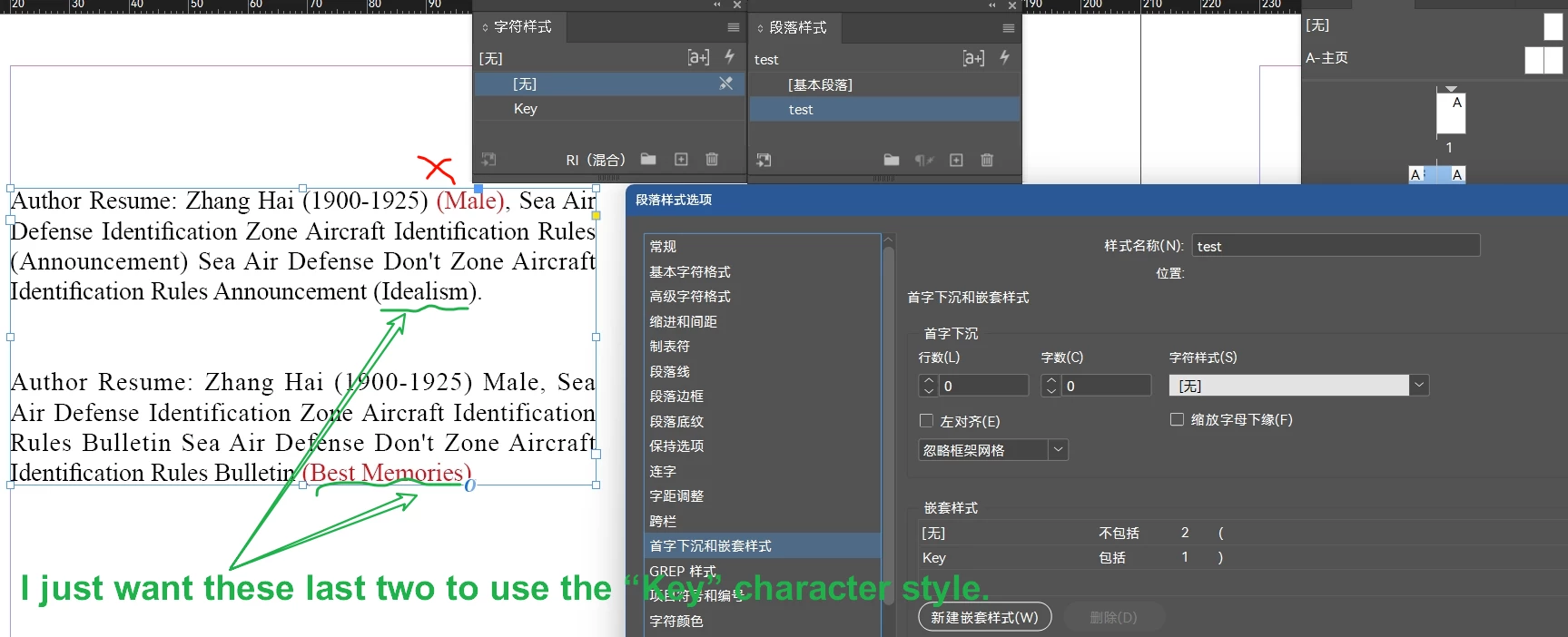 I now want to use only one paragraph style, nested control of the last "(Idealism)" and "(Best Memories)".