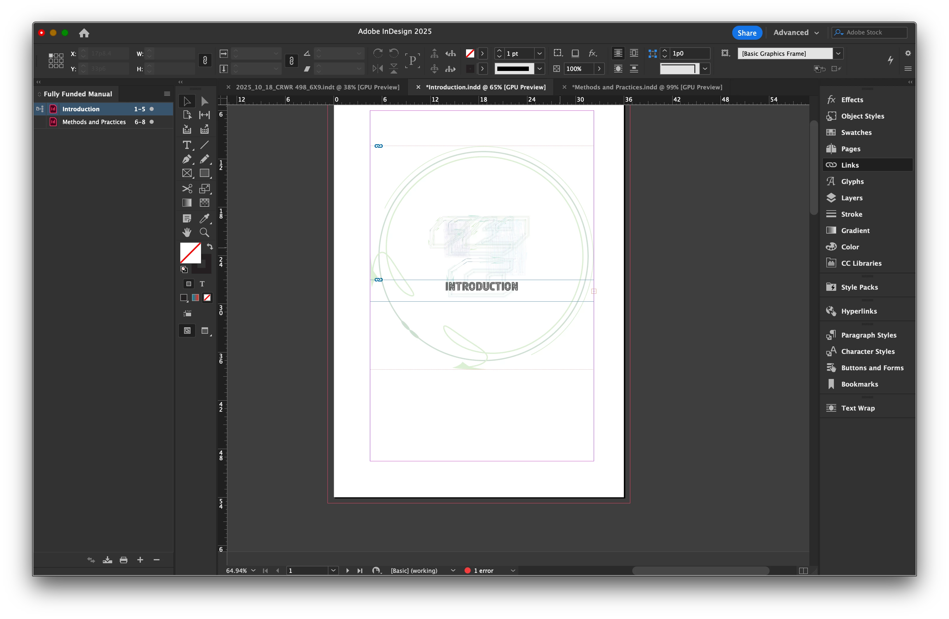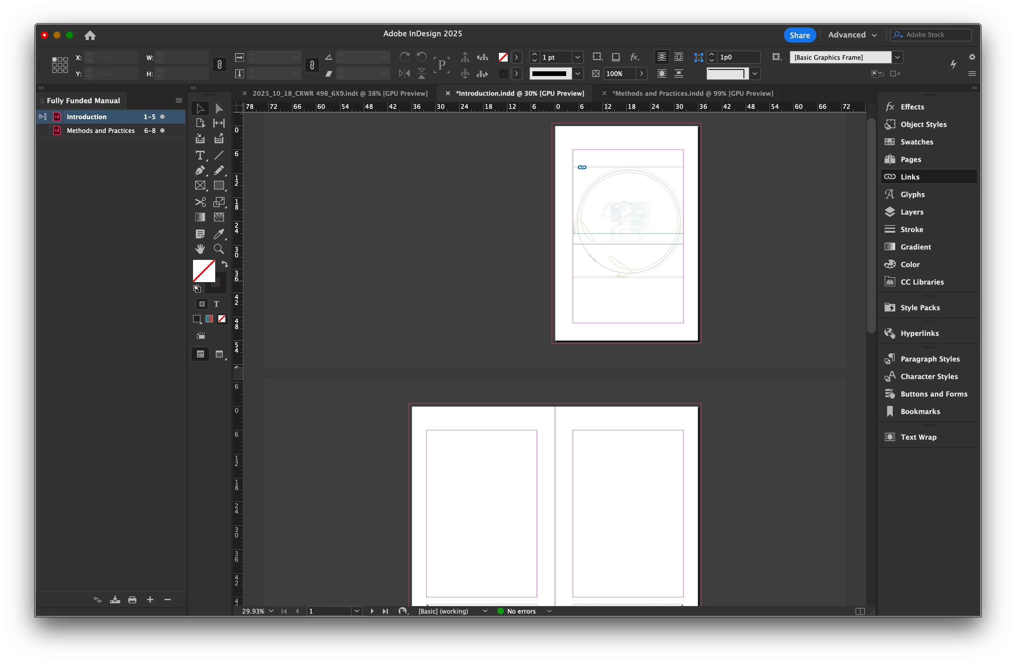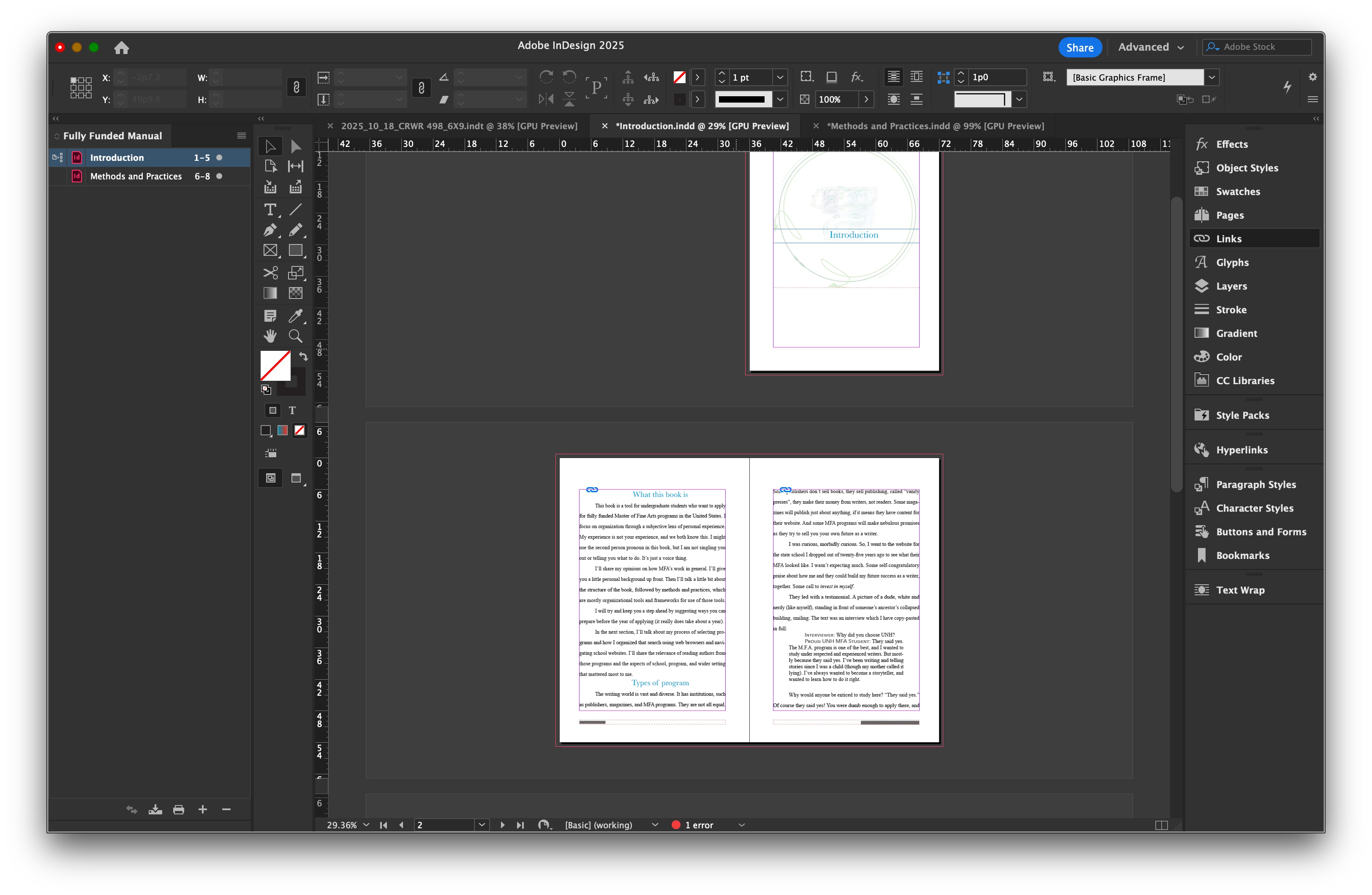 I would like to have a blank TEXT FRAME for my chapter heading on the first page of a document. I would like to place the "LINKED FILE" into that TEXT FRAME and LINK TEXT FRAMES for the following chapter text to roll into.