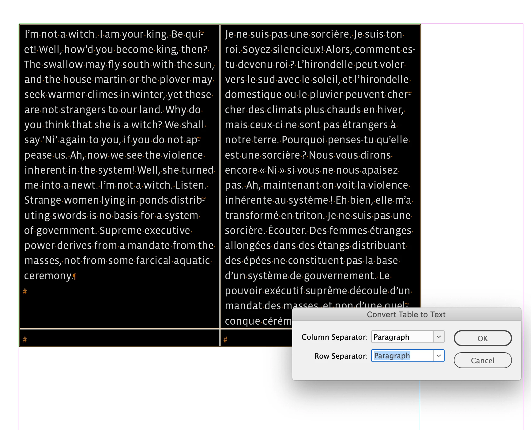 I try directly place word file to InDesign and it work, but, the paragraph still in table format, so when I face a long paragraph it can't continuously to the next page because the table format, so is there any solution for this?
