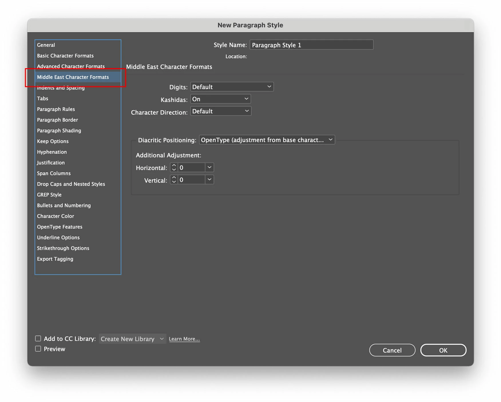 Am I missing where you can put the world-ready composer in a style? I have copy as paragraph style, but Arabic doesn't look right, I check World-Ready Composer and it looks correct, but then I have a plus (+) next to my style and I just want it to be part of the styles. What am I missing?