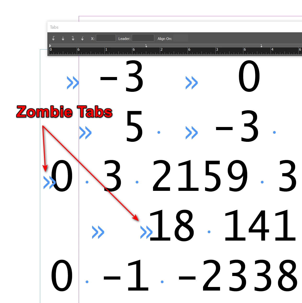 I'm pasting unformated text and it comes in with a funny tab character that doesn't behave like a normal one. When I key in text, the tabs work correctly. But when pasting in, they come with this zombie tab that makes the alignments wrong, and the zombie tab can't be deleted. I tried first pasting the text into Microsoft Notepad to launder it, then paste it, but same problem. I tried copying it from the same InDesign document and Paste Without Formatting, but no joy. It seems like there's an invisible control character that is rendered with the tab symbol, but it's not a regular tab. Here's an annotated screenshot: