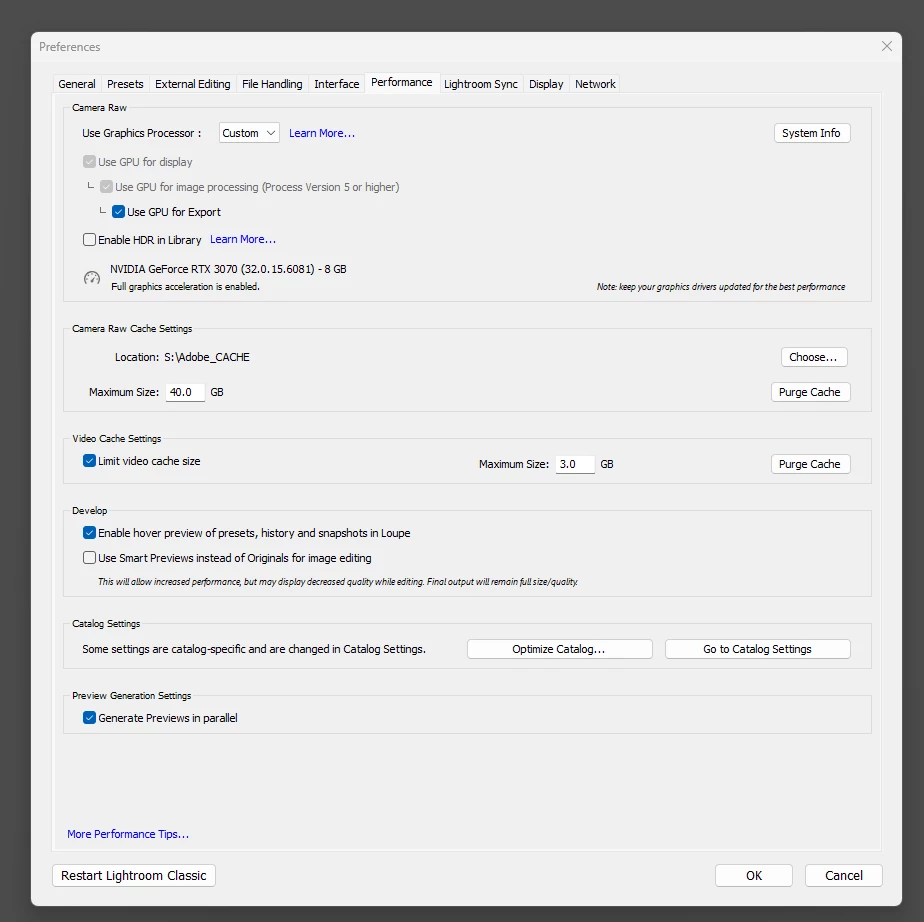 업데이트후 라이트룸 편집시 라이브러리 쪽에서 현상 쪽으로 넘어 가면 느려지고편집 시 수정값도 입력이 느리게 적용됩니다 마우스 색도 변화고 메뉴창도 깜빡 깜빡거리며 사진도 가로 세로 크기가 이상하게 나옵니다