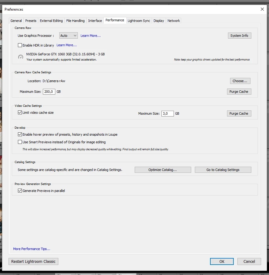 1:1 previews in Lightroom C drive overfilling issue
