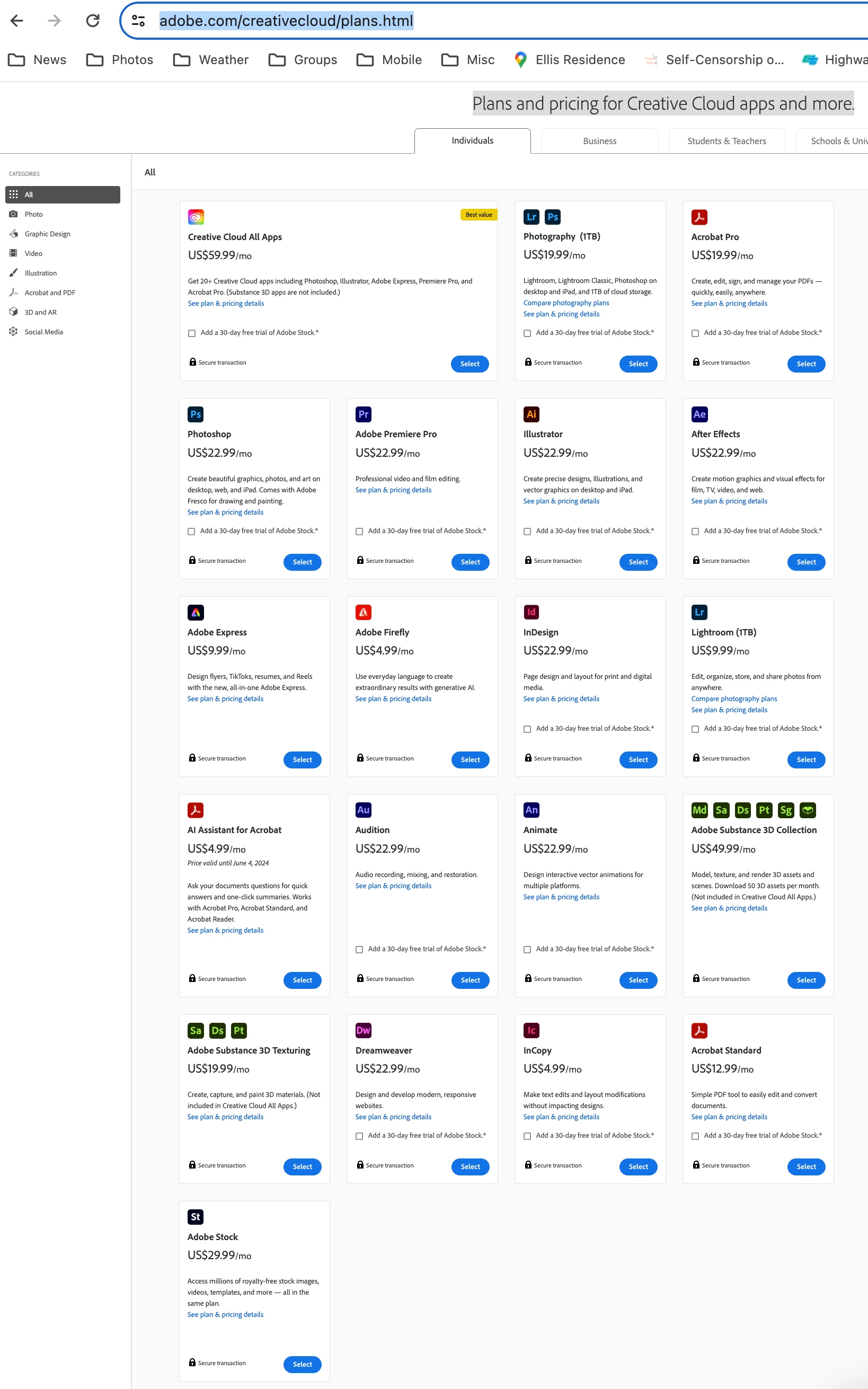 And, if you had clicked to see "Lightroom" plans it's the same thing but with the addition of the 1tb $9.99 Lighroom Cloud only plan. In the case of asking to see LrC plans, in order to see the cheaper plan you need to click the "See all Plans and Pricing" text in fine print at the way bottom of the page. In the case of asking about "Lightroom" plans, there are no links that eventually take you to the 20gb $9.99 plan,