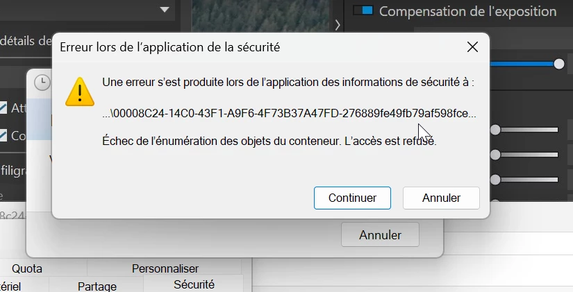 An error has occurred while applying security information to .../0008C4.... Container object enumerator failed. Access denied