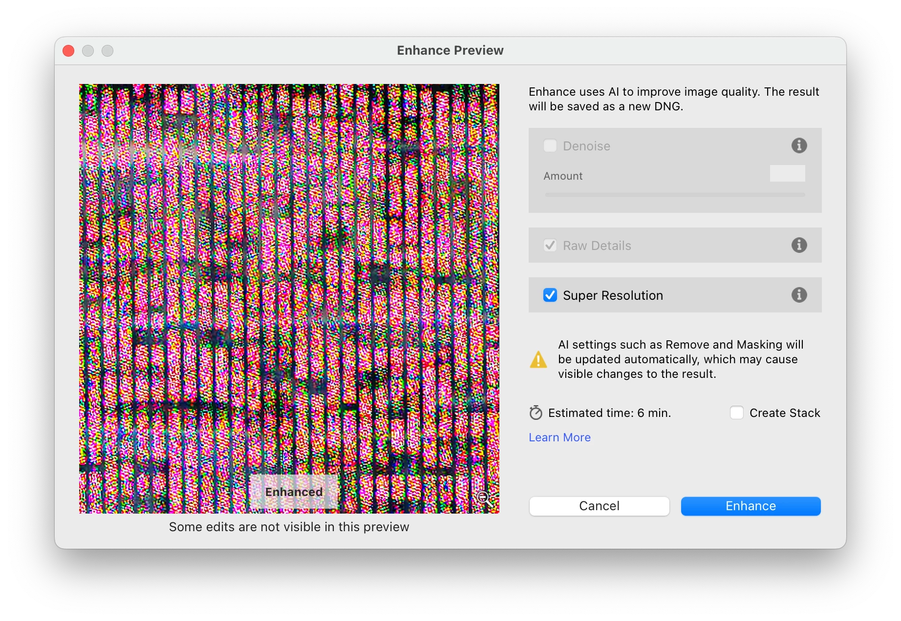 AI Enhance causes strong artifacts under macOS 12