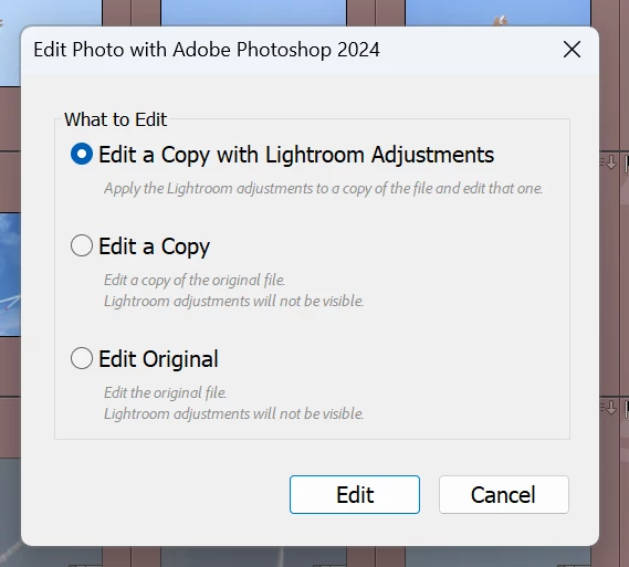 3. Then again choose option to edit in photoshop (original TIFF), make some changes in object