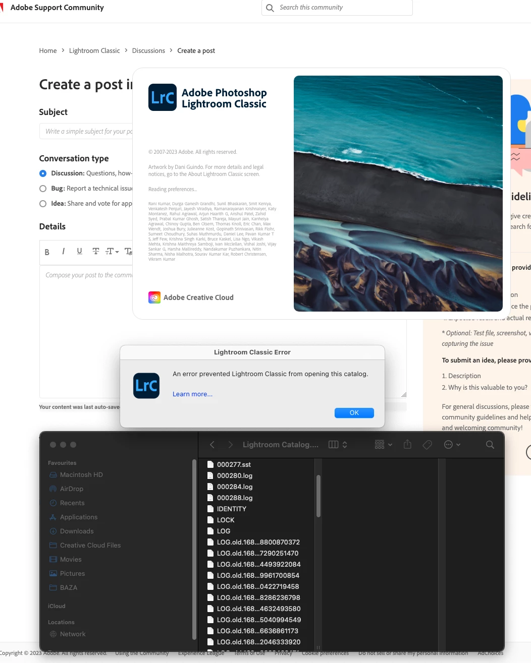 Tted31267250fh4gParticipantForum|Forum|2 years agoAugust 7, 2023QuestionAn Error prevented Lightroom from opening this catalogForum|Forum|2 years agoAugust 7, 20231 reply636 viewsmacOS