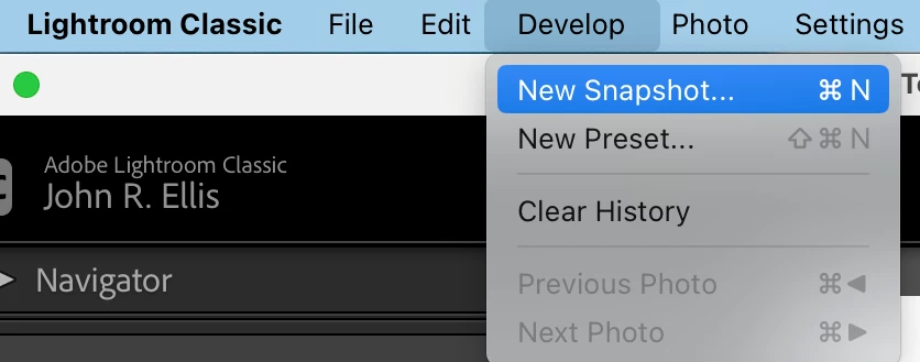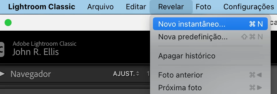 Atalho Lightroom Classic - "Instantâneos"