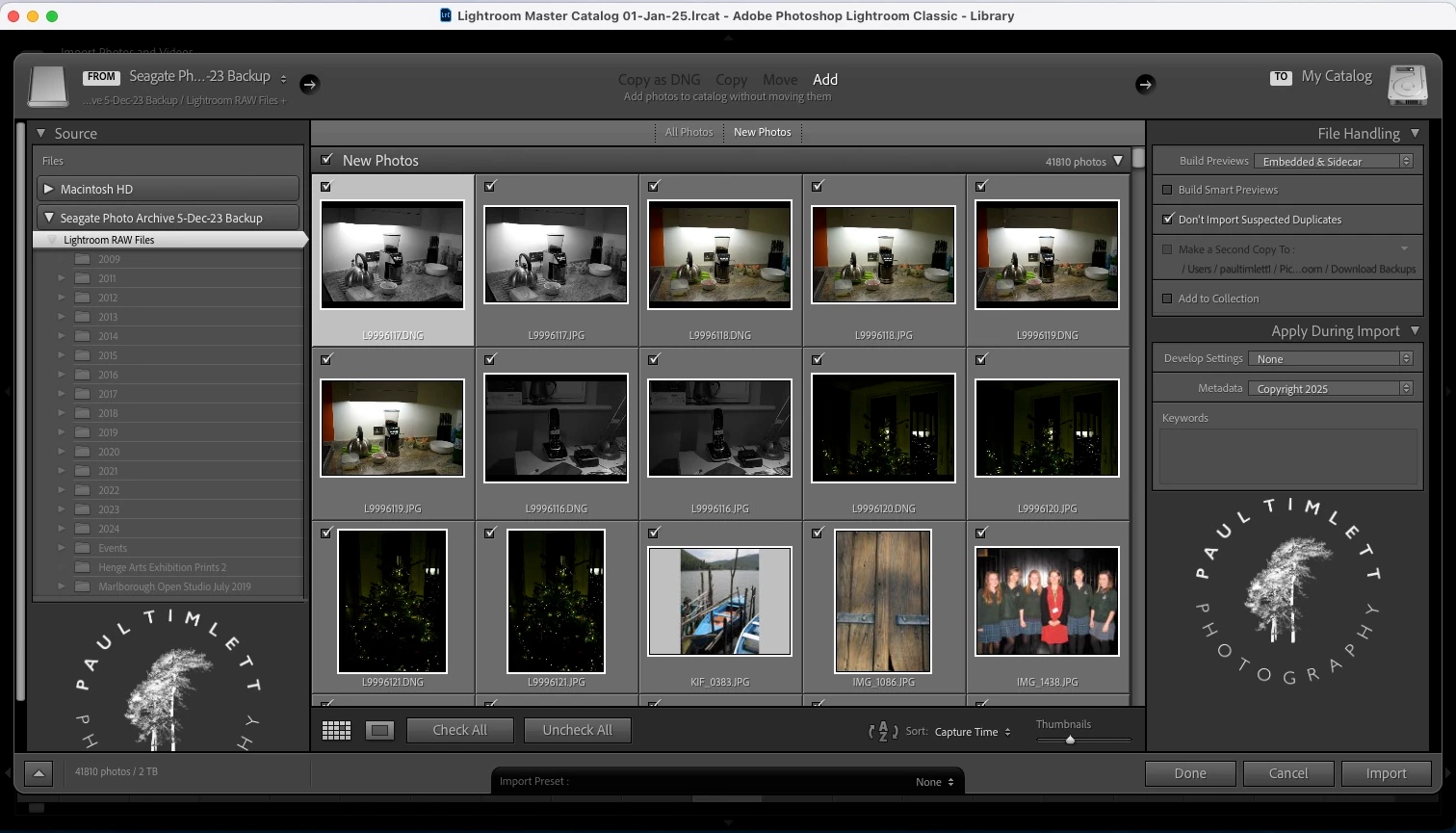 Should I click Import? Won't that duplicate all the images? I made that mistake a few years ago and it took me weeks to sort out the mess. I did try importing one image this time and it seemed to be OK. But I'm concerned that if the Archive drive is corrupted or destroyed at the moment I won't be able to fall back on the Backup drive, apparantly until I import all the images.