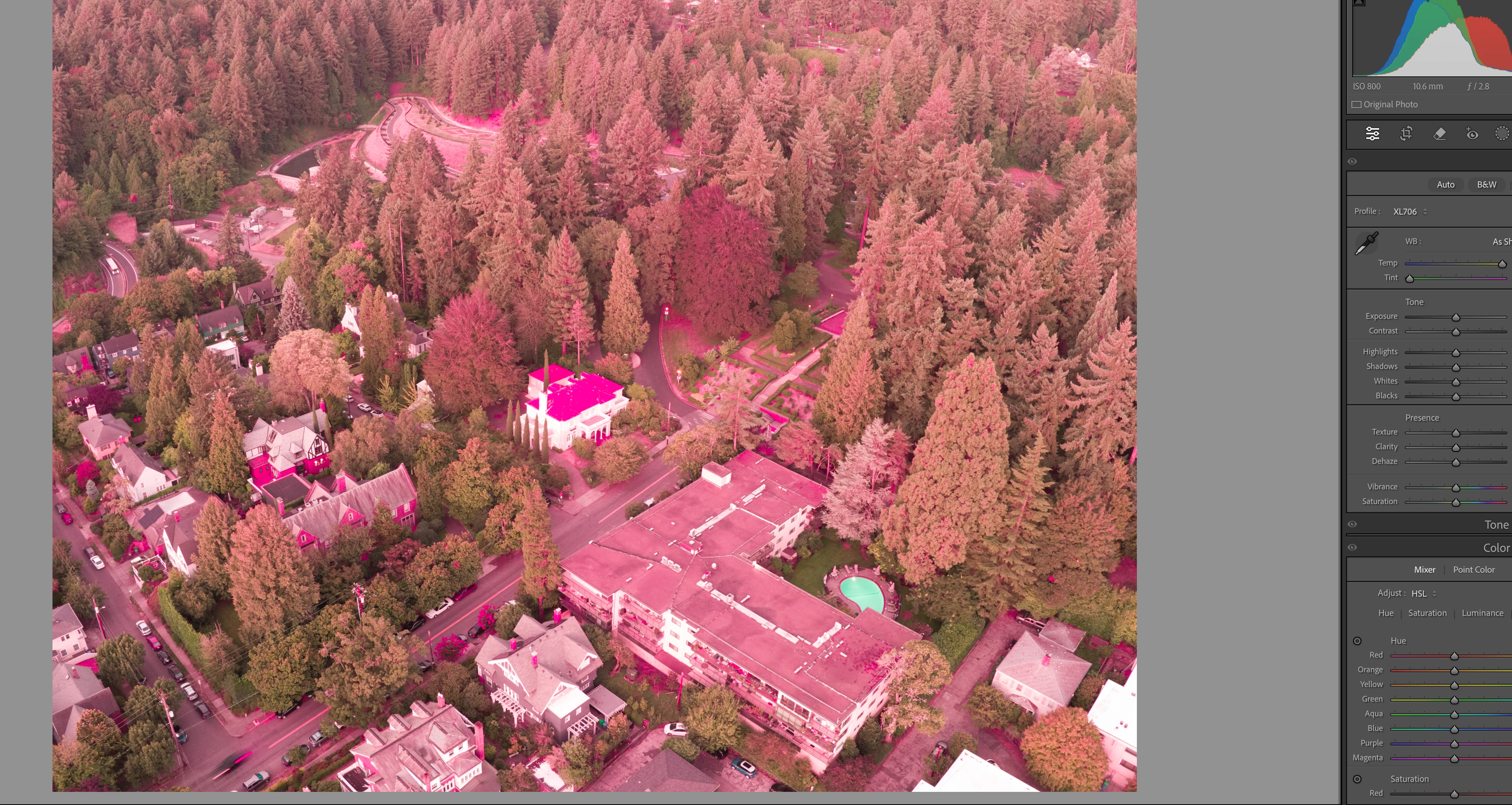 No amount of sliding fixes this insane color. Everything looked fine while taking the photos but they are unusable. I shot on auto white baalcne and tried again at 5500k - does not make a difference. The other thing is all my presets are in italics aka will not work with the selected photos which is a dng, which is what I used to make the preset.