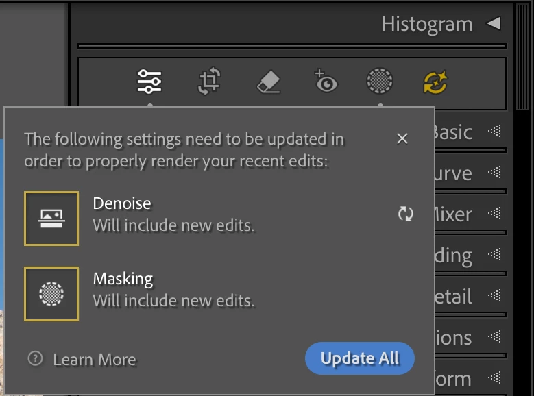 Auto Import with Development Setting DeNoise