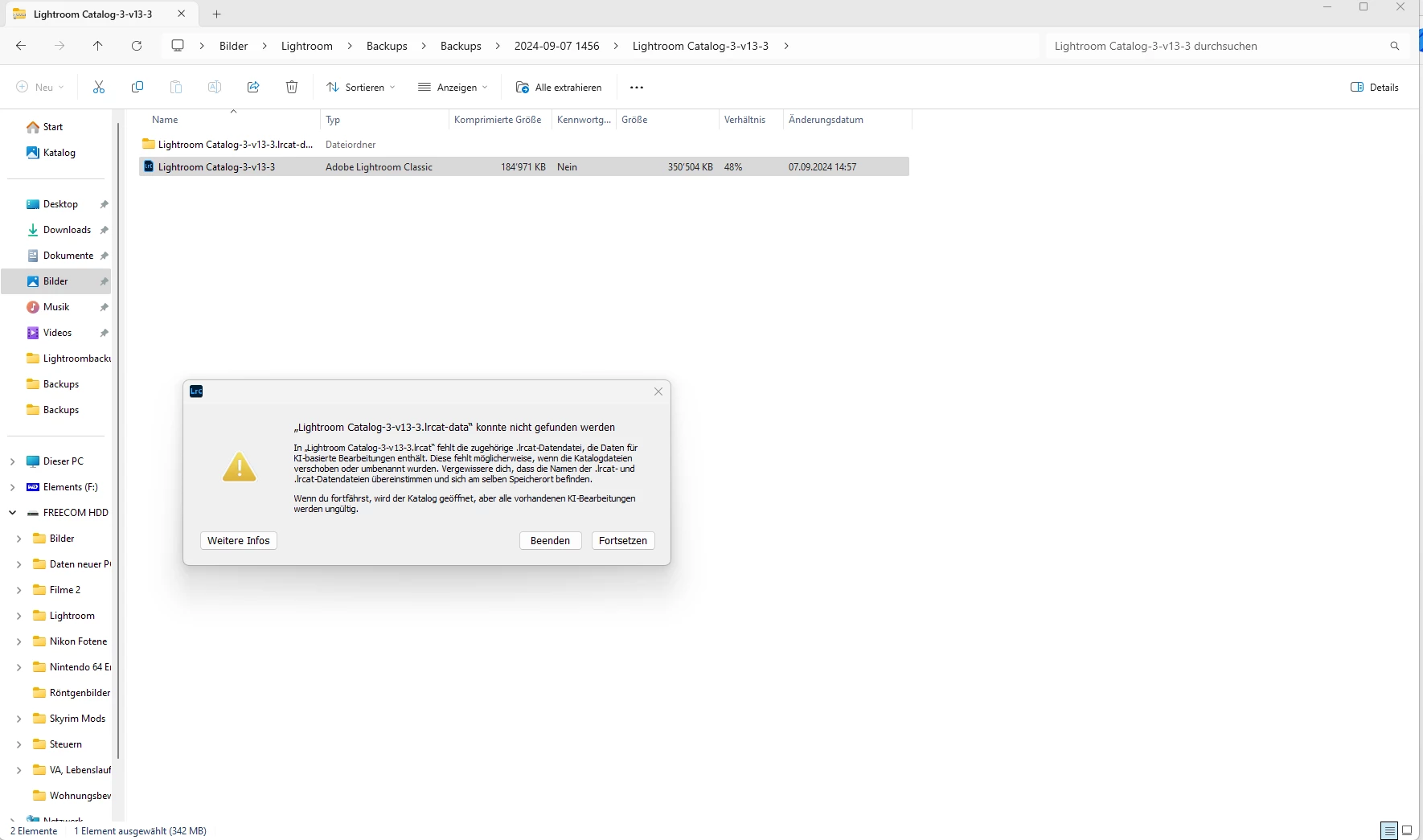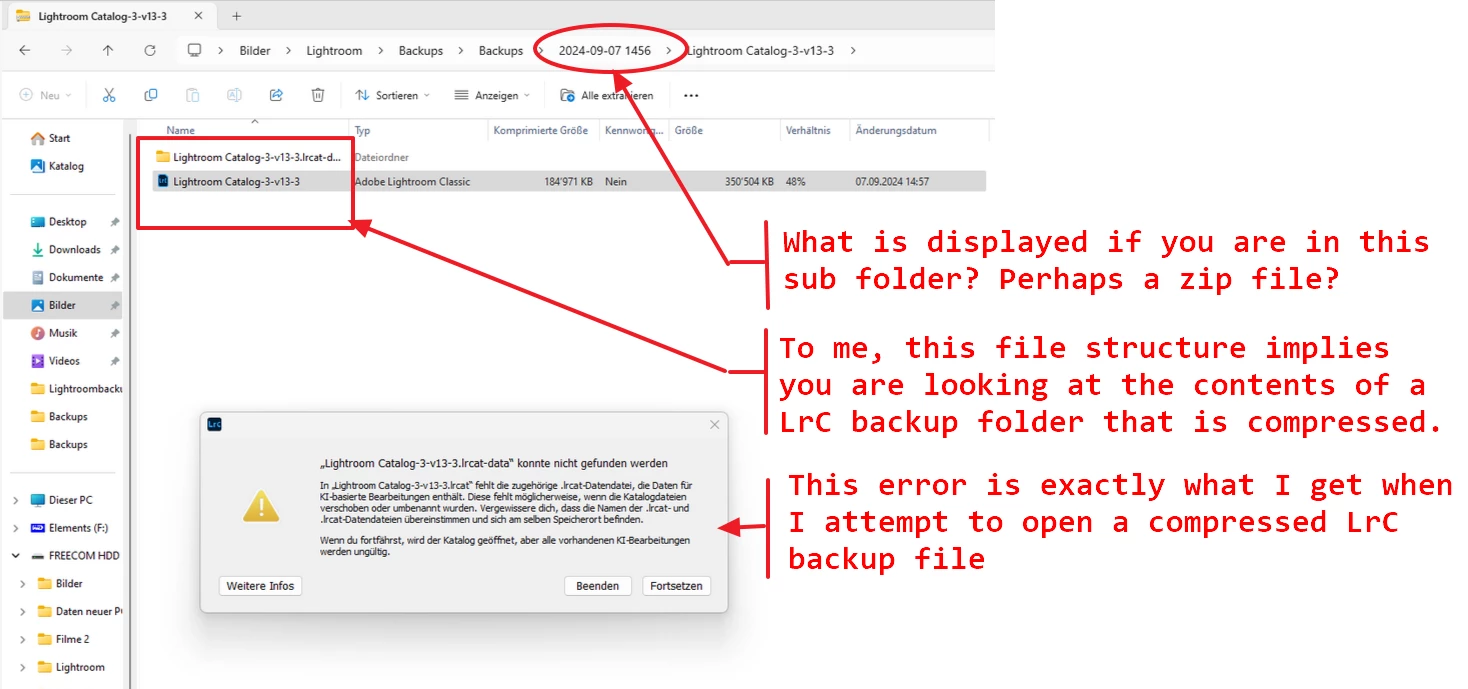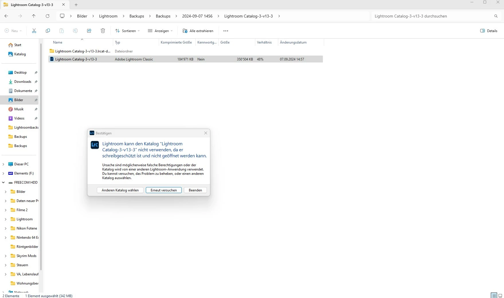 Habe vor ein paar Tagen meinen PC gewechselt. Den Ordner mit dem Lightroombackup habe ich auf eine externe Festplannte kopiert. Nun kann ich den Backupkatalog auf dem neuen PC nicht öffnen da eine Fehlermeldung wegen Schreibgestützt kommt. Den gesamten Backupordner kann ich zwar kopieren, den darin enthaltenen Katalog einzeln aber nicht. Öffnen geht schon gar nicht. Rechtsklick und Schreibschutz entfernen klappt leider nicht.