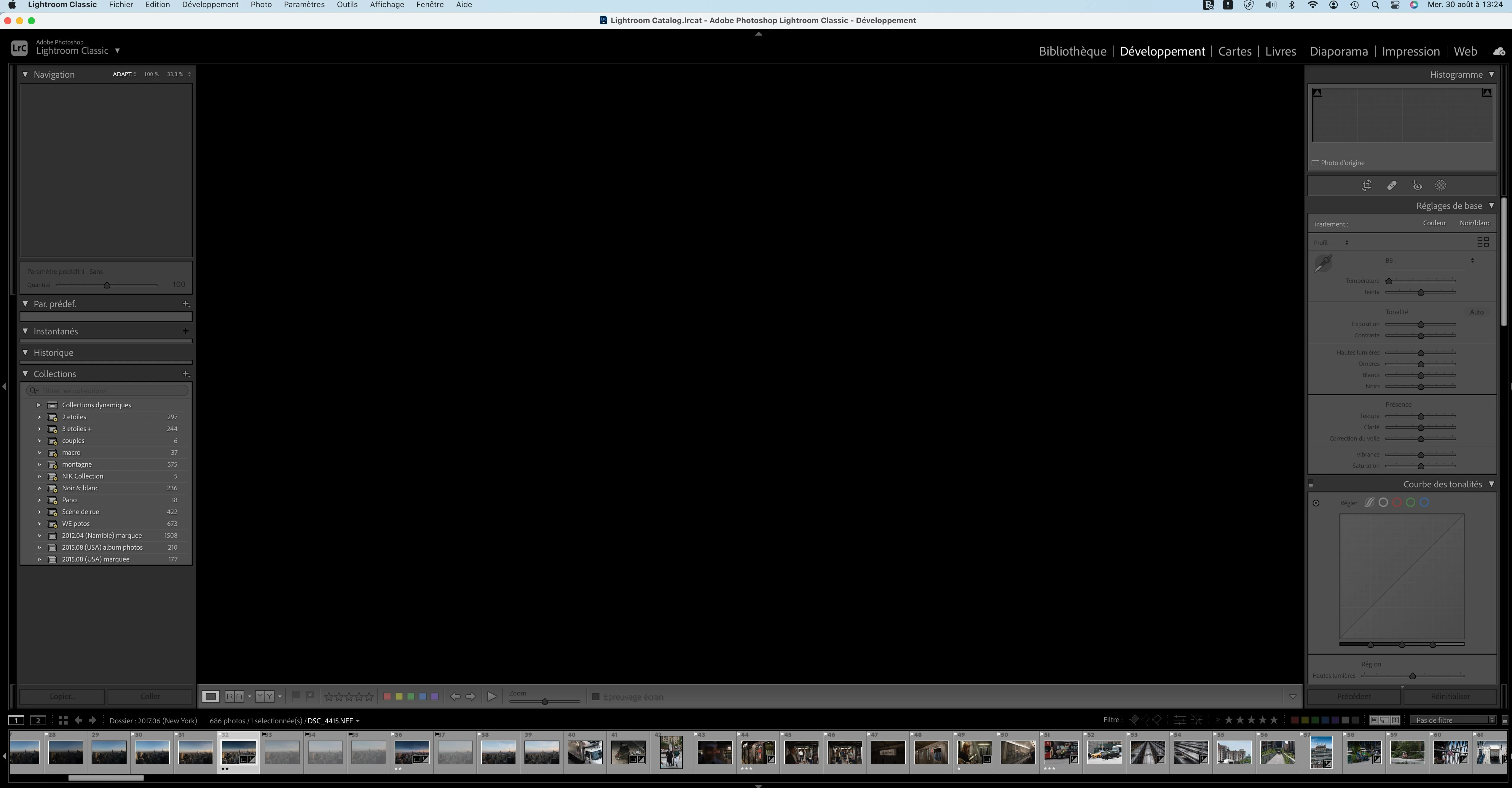 on the develop module, I see the pictures with their caracteritics on the below bar....but whatever I do to select them and develop them, the screen stay black.....