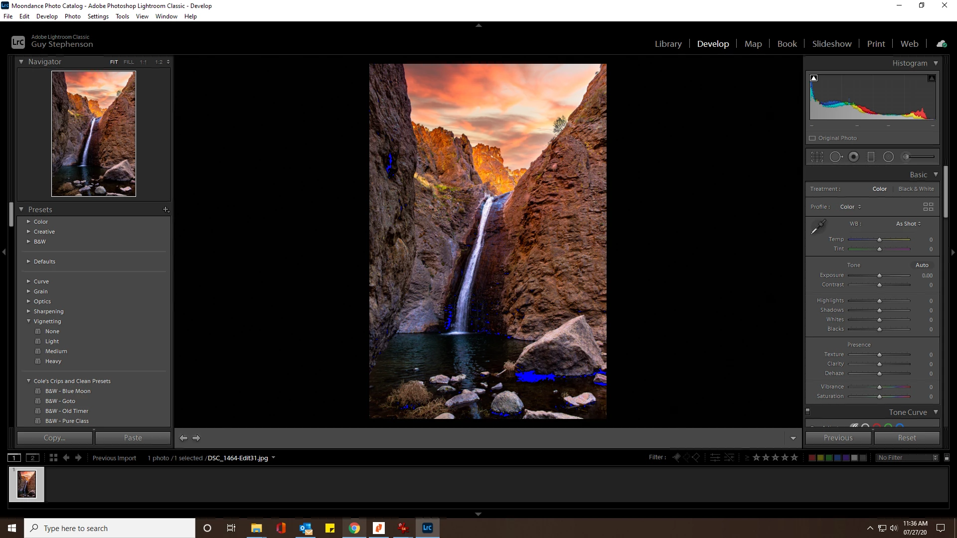 I was using Lightroom Classic and suddenly started getting blue saturated areas throughout all photos, even after closing and re-opening with new photos. What's causing this, and how do I fix it?