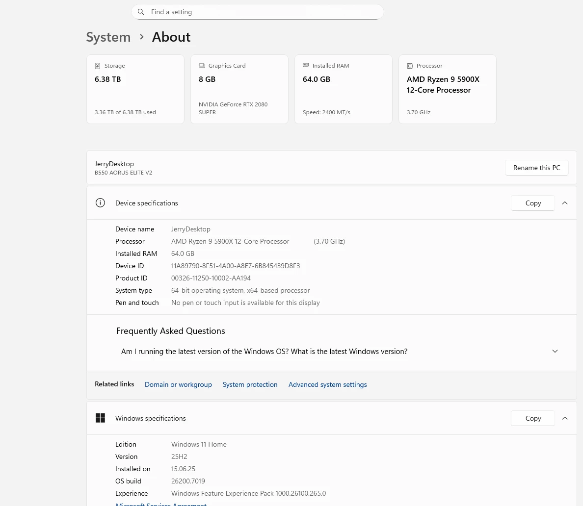 I run the latest Win 11 update, a AMD Ryzen 9 5900X processor, 64 GB Ram and an 8GB RTX 2080 Super Graphics adapter.