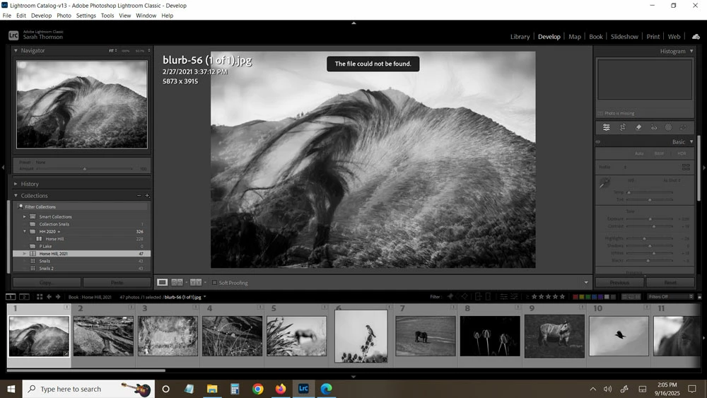 Hi there, I just opened Lightroom. There was some sort of update, and now the images in my book module are showing, but when I press develop mode it says the photo cannot be found. None of these photos can be found. They were all on my external hard drive which is plugged in, and I can plainly see them on the hard drive separately, so I know that they're there. Can someone please assist with this? I have no idea how to fix this, but I'm pretty sure it can be fixed, right? That book took me a long time to put together I cannot start it over again. Thank you in advance to anyone with any suggestions!