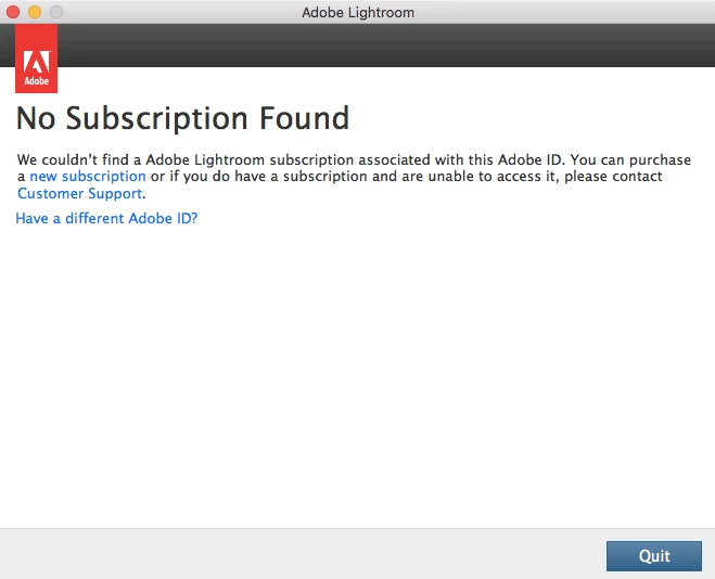 Also I manage to add my box lightroom licence number in the online system Cont Adobe in "Plans&Products" but it didn't work out.