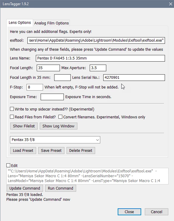 Can I manually add/update my camera & lens serial numbers to ACR 15.5, Lightroom Classic 12.5, Bridge V 13.0.4.755 and Photoshop 24.7.0 EXIF?