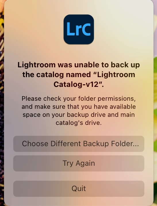 After updating to macOS Ventura I can no longer backup my Lightroom CC catalog to my NAS. Worked fine before. Has anyone else experienced this? This is the error I get. The only thing that has changed is the OS update.
