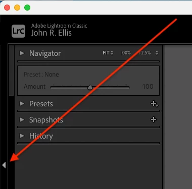 In Develop the panels to the left and right of the photo being edited don't seem to be able to be shrunk down below a certain (too large) size, which is something I could do before. Is this indeed the case? Currently the photo being edited barely covers 1/3 the screen width, it's tiny! Before I could work with more like 2/3 the screen width.