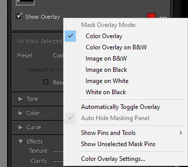 Can't bring overlay color palette in mask