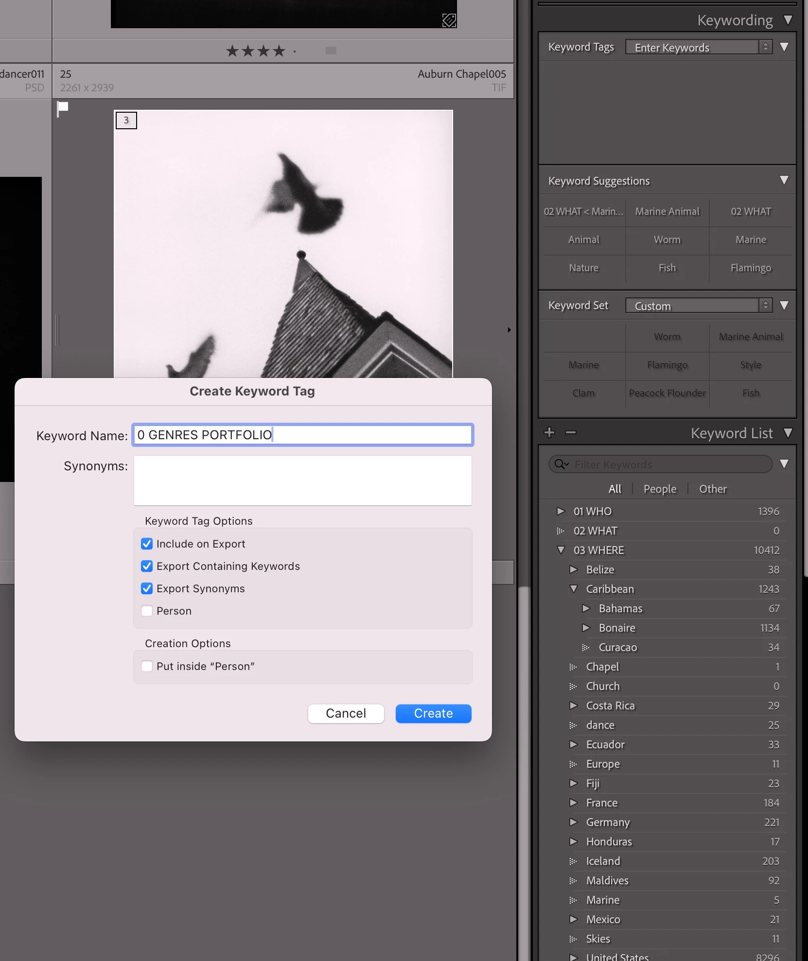I created nested Keywords without any problems but tonight I can't created keywords. I creted the following keywords: WHO, WHERE and WHAT. I had to create the WHAT keyword inside another keyword and then drag and dropped where I wanted. The "+" on the Keyword List tab doesn't seem to be working anymore. I tried adding the following keyword, 0 GENRES PORTFOLIO as the top level of nested series. When I click ok it never appears in the list and it gives no errors. One fix said to delete the helper.irda files which I did, but it did not resolve the problem. Should I reinstall Ligthroom Classic? That's what I use.