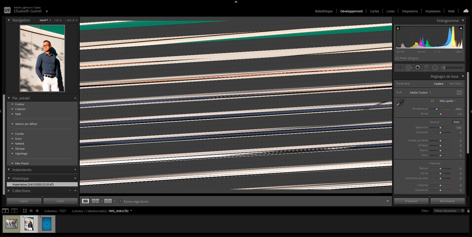 I've not been able to edit a photo in the editing module for the last 2 days : The photo appears as diagonal rays only. (see enclosed JPEG).