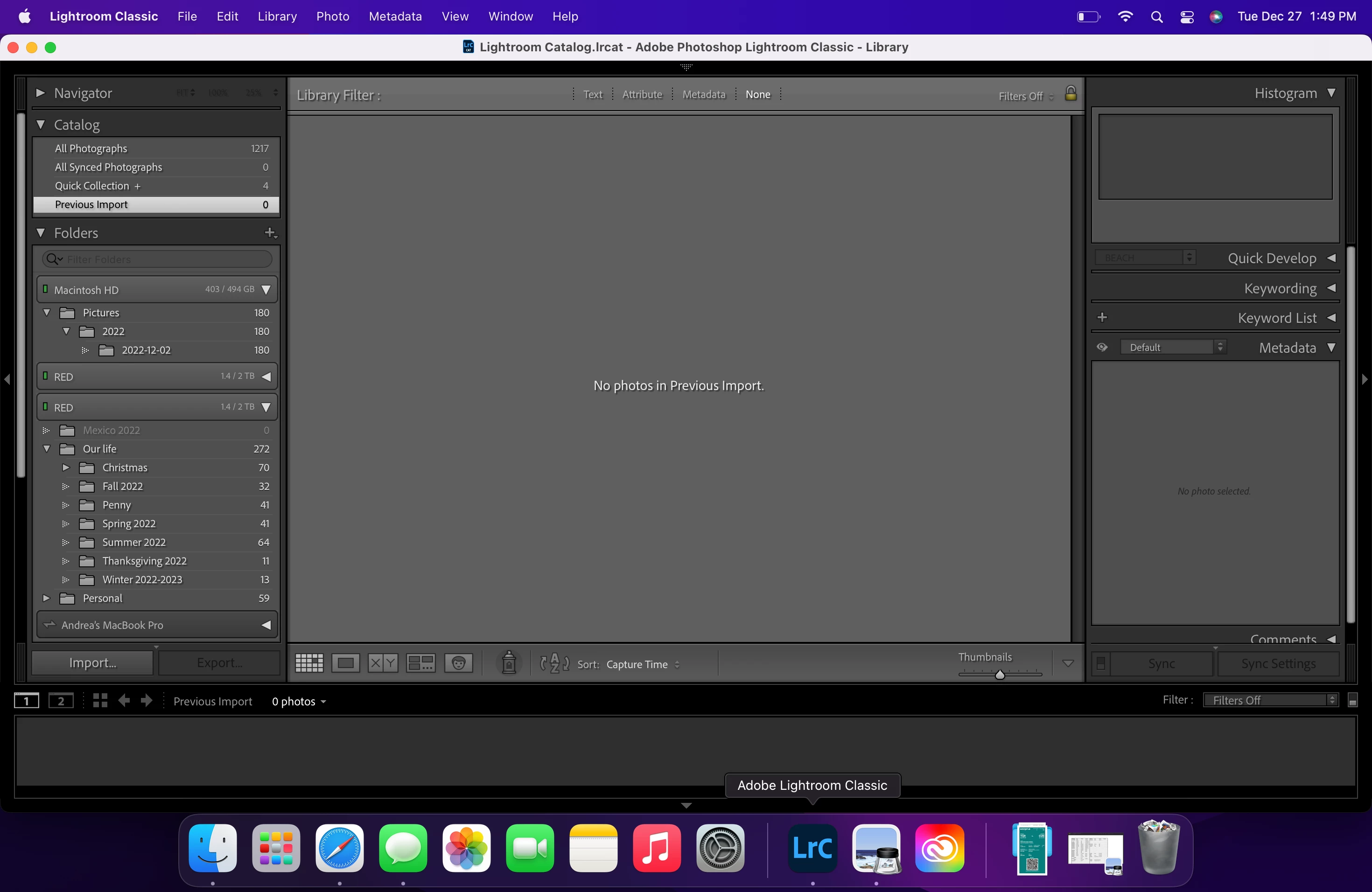 Hi, I am having issues importing photos into lightroom. Has never happened before. I import how I always have and it says "No photos in previous import" and the folder is empty. Sometimes they go into "All photos" but otherwise they aren't anywhere. Not sure if it's a lightroom issue, external hard drive issue or what. I can import them directly from my memory card but I don't want to do that as they then aren't organized into folders/sessions so it makes culling difficult.