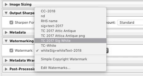Can't select watermark for export