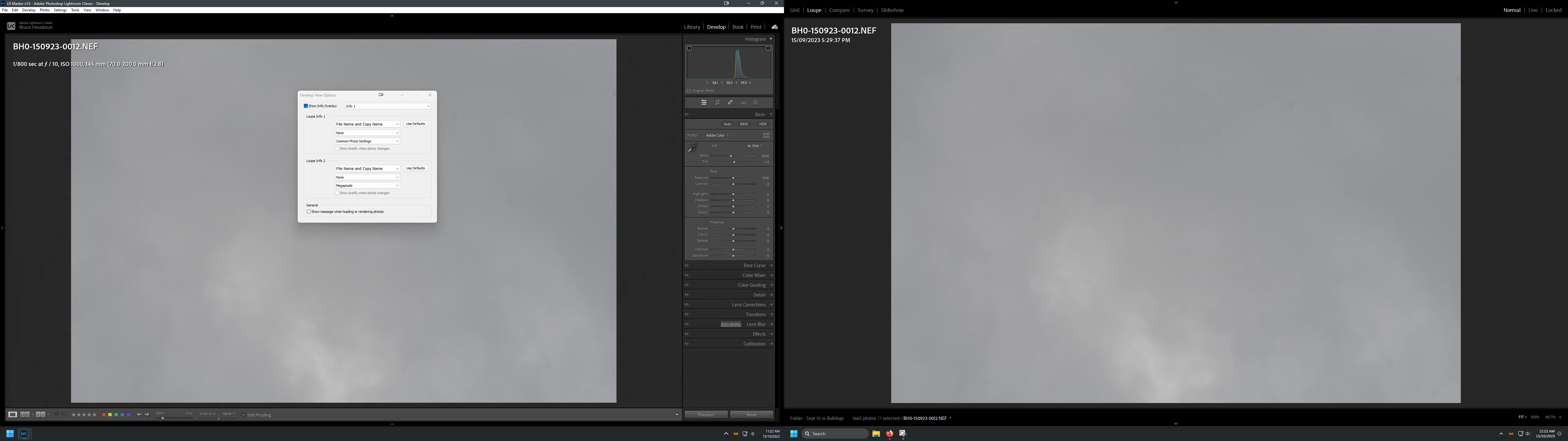 Develop - Info 1 = Filename and Common Photo settings