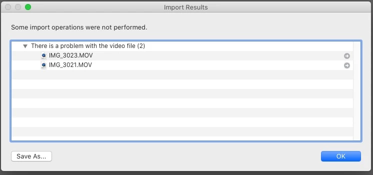Hi. Lately I have not been able to import .MOV files from my iPhone 14 Pro into Lightroom 11.5 running MacOS Catalina 10.15.7. I can download them from my phone to my iMac but when I go to import them with Lightroom I see image icons for jpegs but for the .MOV files I see "Preview unavailable for this file." When I try to import the files the jpegs appear but I get this error message for the .MOV files.