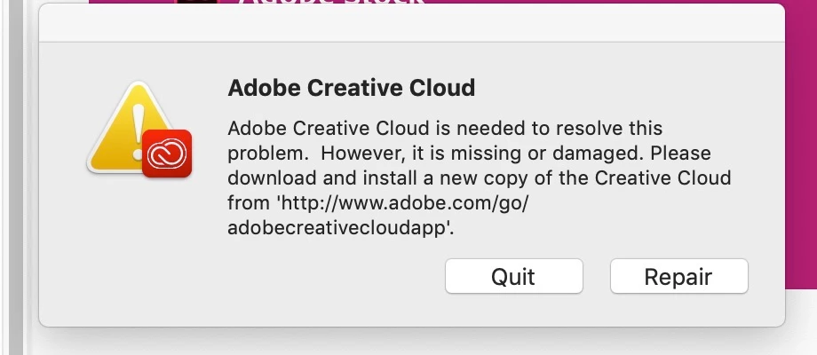 Creative cloud crashed and I received the following error msg so I clicked on the lonk and reinstalled CC again.