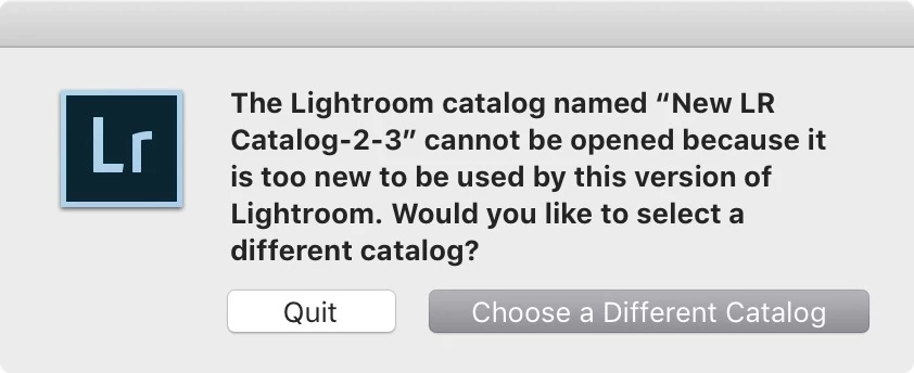 catalog cannot be open because it's too new
